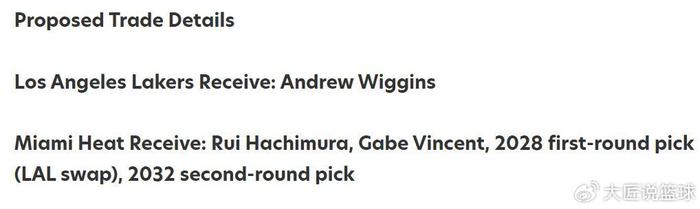 骑士得到:八村垒+文森特+28年湖人首轮互换+32年次轮签。